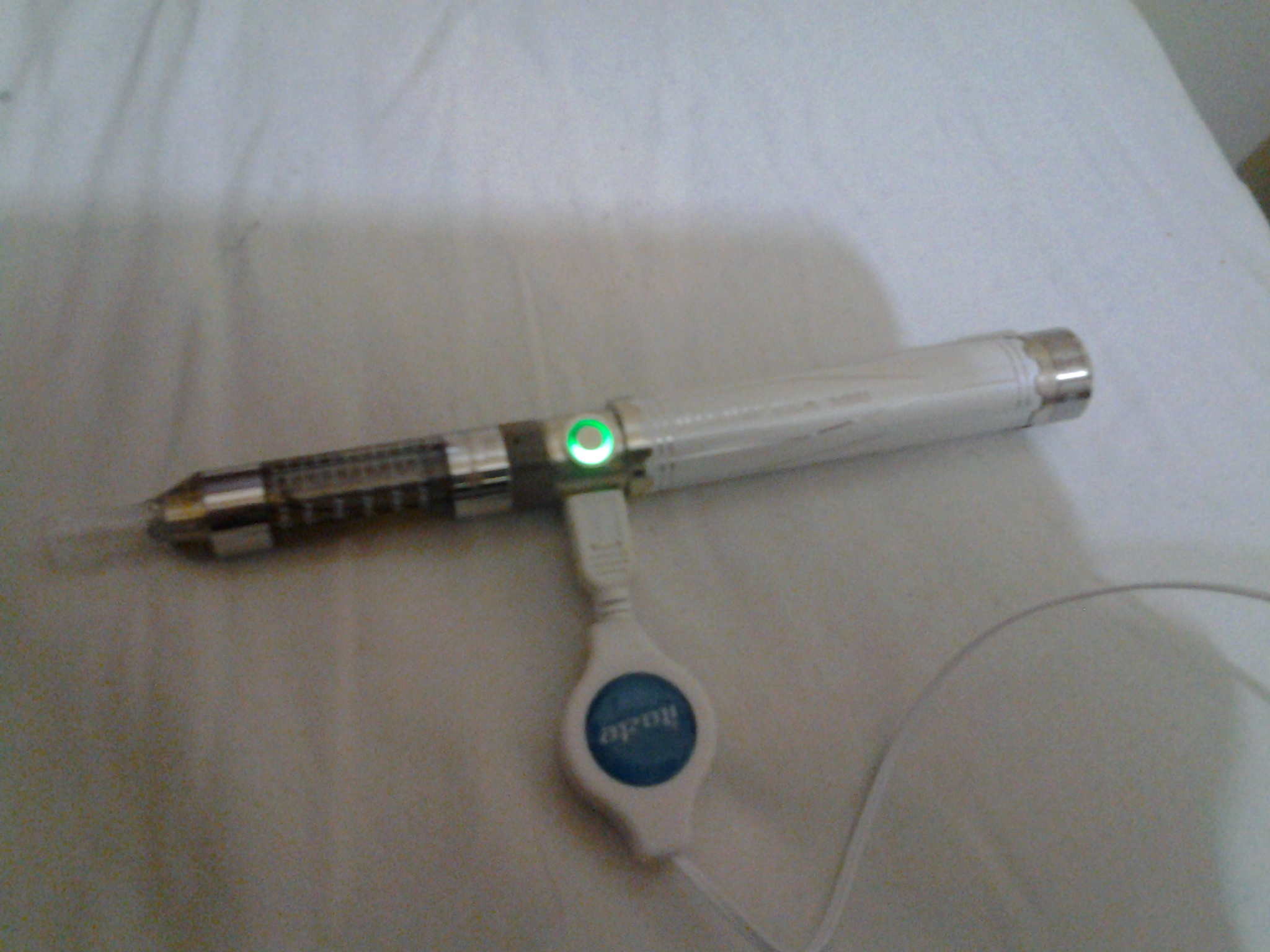 Dispositivo de Viajes Dimensionales en acción. Nótese cómo el autor comienza a desvanecerse para trasladarse a otra dimensión.