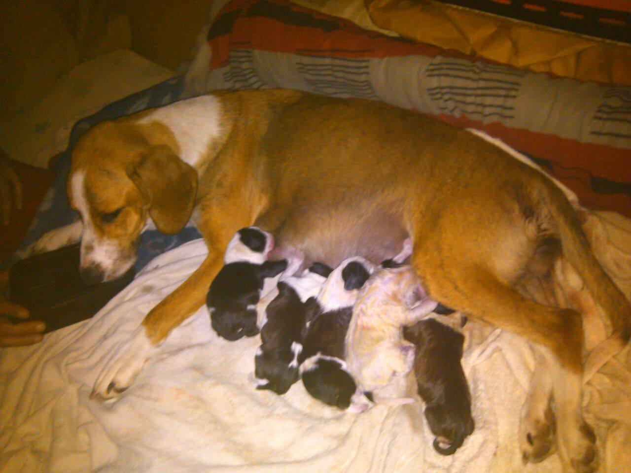 Illa es esta perra que veis pariendo. La encontró mi hija en un contenedor de basura cuando tenía unos días de vida.