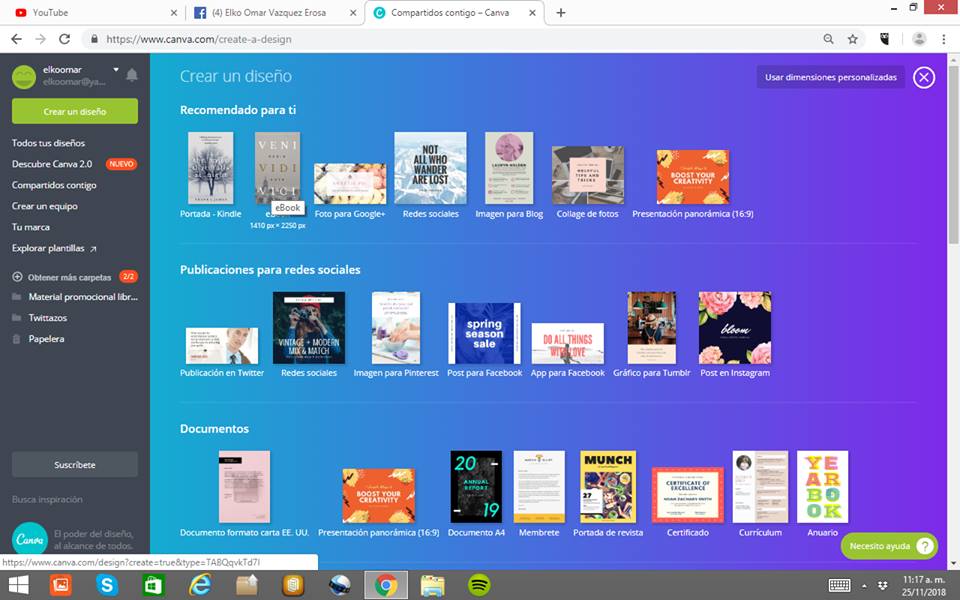 Asumiremos que no somos diseñadores profesionales, por lo que podemos aprovechar el programa Canva.