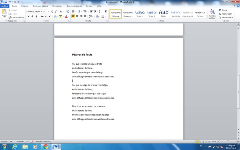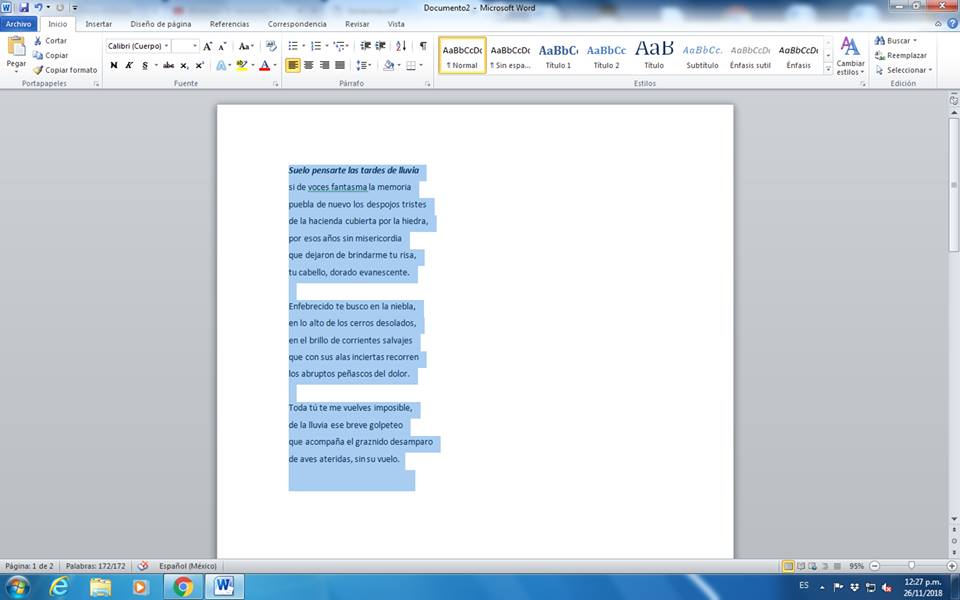 Es importante seleccionar los textos poéticos y, a diferencia de la prosa, que están justificados, los seleccionaremos para dar la opción de poner el texto a la izquierda, como se muestra en la segunda imagen que adjuntamos.
